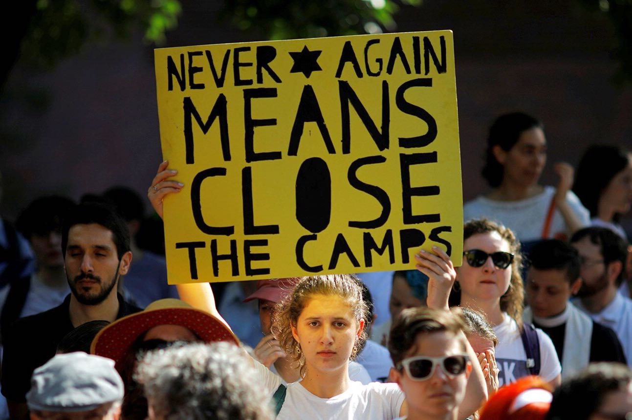Demonstrators participate in a protest initiated by Jewish groups against ICE detention camps in Boston on July 2, 2019.