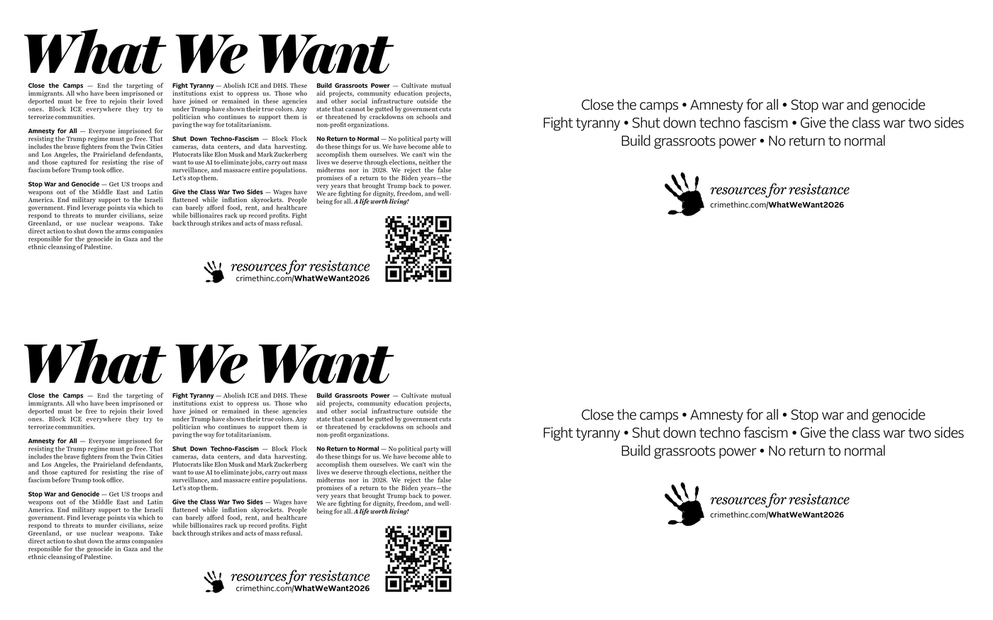 No political party will do these things for us. We have become able to accomplish them ourselves. We can’t win the lives we deserve through elections, neither the midterms nor in 2028. We reject the false promises of a return to the Biden years—the very years that brought Trump back to power. We are fighting for dignity, freedom, and well-being for all. A life worth living!